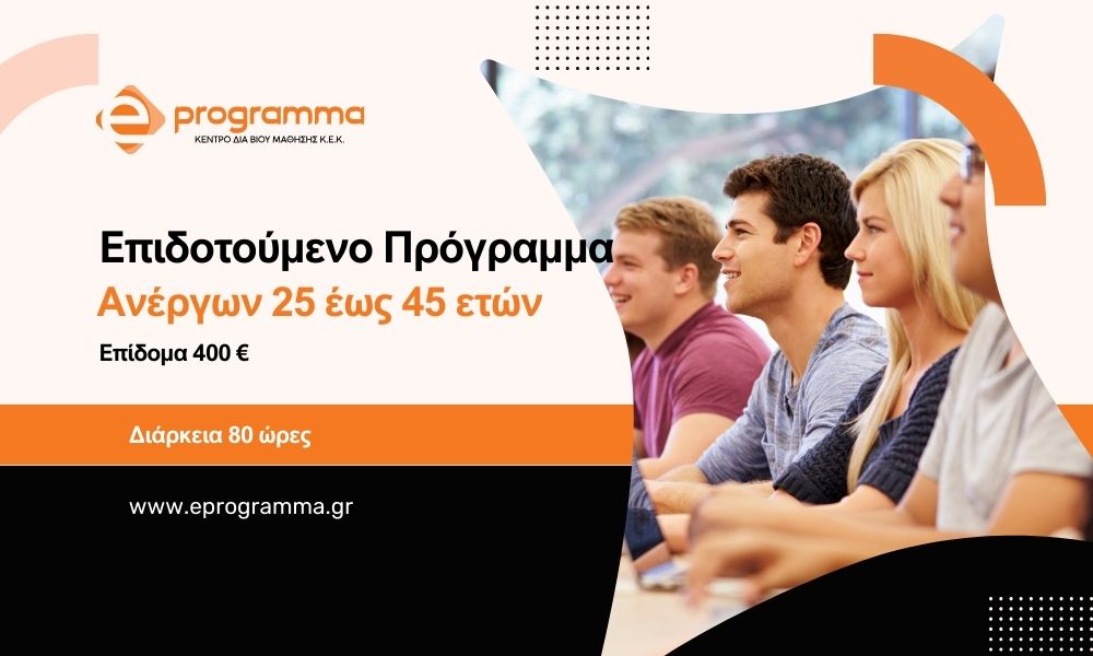 📌 Ενίσχυσε τις δεξιότητές σου και προχώρησε επαγγελματικά μέσα από ένα πλήρως επιδοτούμενο πρόγραμμα κατάρτισης για εργαζόμενους του ιδιωτικού τομέα!